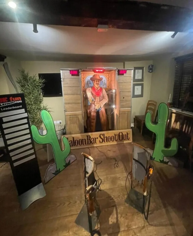 Any questions or need any further information? Contact Rodeo Bull Hire UK here today to make your event an unforgettable adventure with the Saloon Bar Shoot-Out game hire.